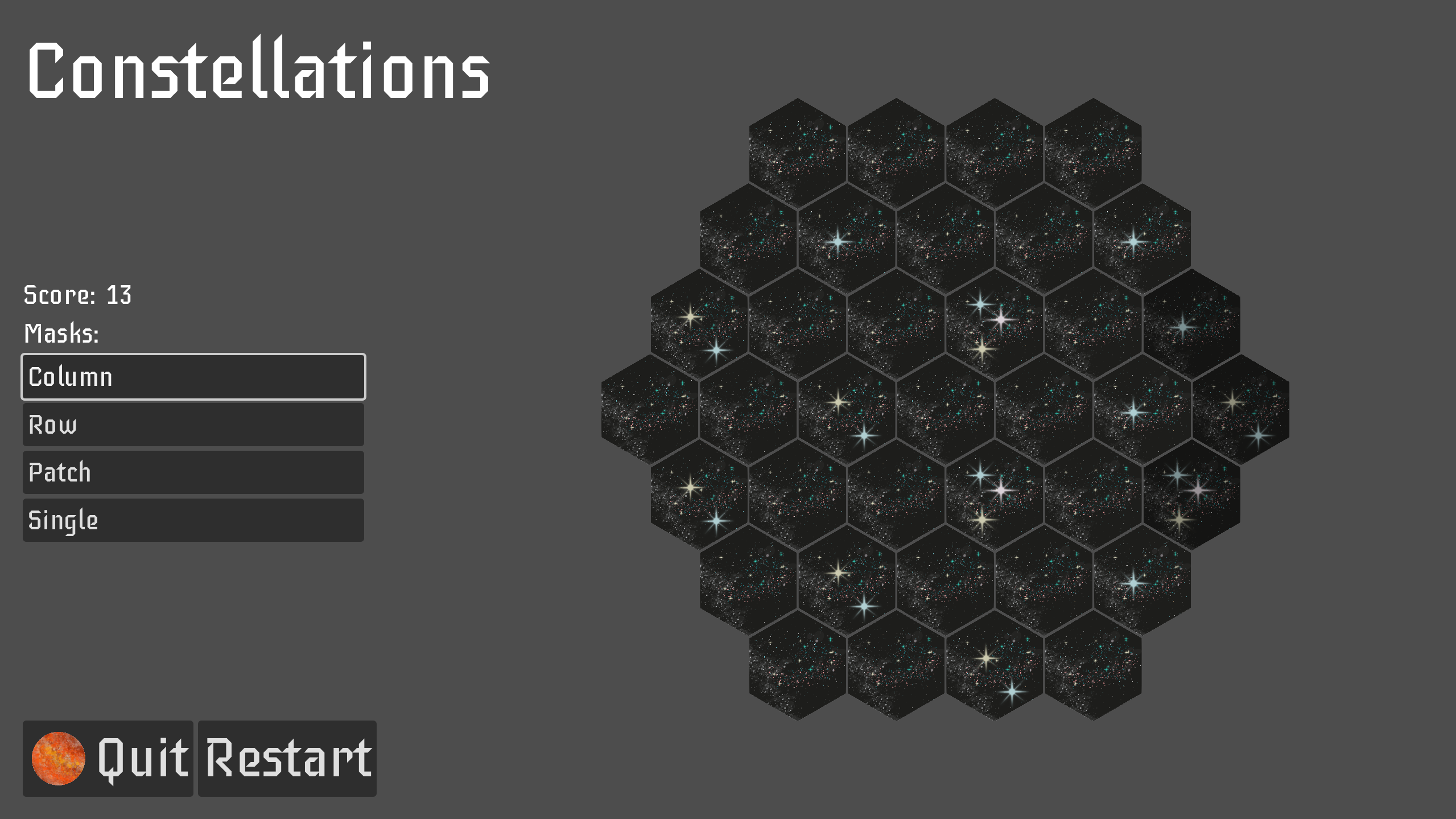 Score by the value of each star tile that has no neighbours. Each mask you use will cost you 1 point.